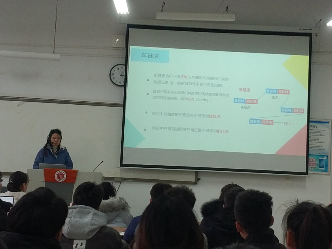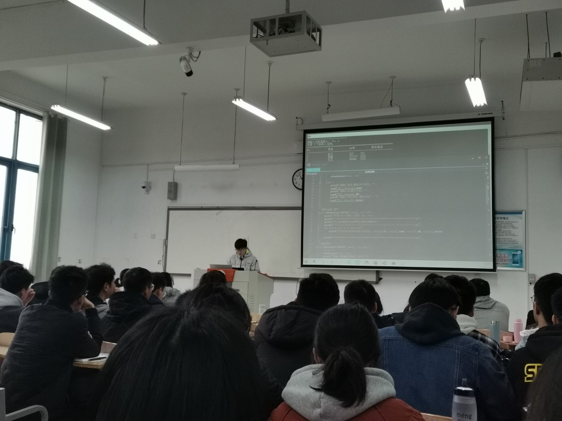 然后让同学们分组展示了他们的课程设计。《数据结构》是计算机相关专业的一门专业基础课,理论性强,知识点多。同学们除了需要掌握基础理论知识,还需要进一步通过编程实现加强理解,并且用于解决实际问题。为了达到这个目标,在学期初我们就对学生进行了分组,并设定了课程设计的题目要求同学们分组完成。