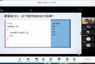 这节课虽然是在线上完成的,但是大家积极参与的热情一点也不比在教室里差,有答疑有互动,有实践练习,老师在课堂上设置的问题层层深入,不断引导学生思考,并及时让学生动手编写程序,教学效果不错。一节课结束,李海涛院长给予了简短的点评,并调查了学生对这种网课的满意度,希望役情带来的“停课不停教,停课不停学”真正有效地执行!另外几位老师就这种多手段并用、共同发辉最大的优越性给予了肯定!