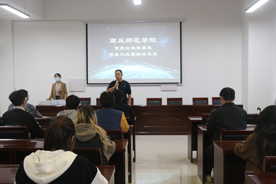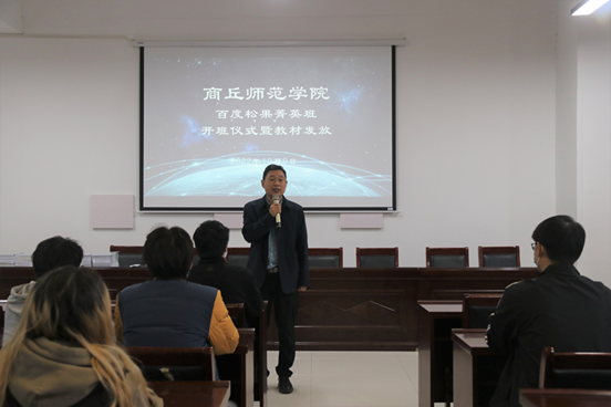 仪式开始,刘佳首先向同学们表示祝贺,并详细介绍了此次菁英班的培养目标。他指出,kaiyun登录中国入口登录百度松果人才培养精英班是由学校和百度公司合作共建,目的是为了培养出更多创新性、应用型、技能型、复合型人才,也是学校不断推进高水平应用型大学建设的要求,希望同学们抓住机会,认真学习,以当代青年大学生的身份勇担时代使命,积极响应科技强国的号召,学好专业技能,以科技助力中华民族伟大复兴。随后王帅芳对精英班培养计划和课程安排进行详细解读,彭会锋则对班级管理和上课纪律进行要求。最后,三位老师共同为同学们发放了教材。