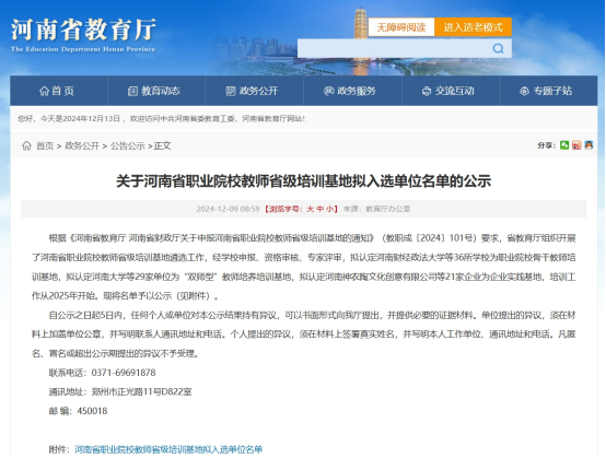 近日,河南省教育厅公示了新一批的河南省职业院校教师省级培训基地入选单位名单。经过学校申报、资格审核、专家评审,最终kaiyun官网成功获批河南省职业院校“双师型”教师培养培训基地。kaiyun登录中国入口登录承担计算机相关专业的师资培训。