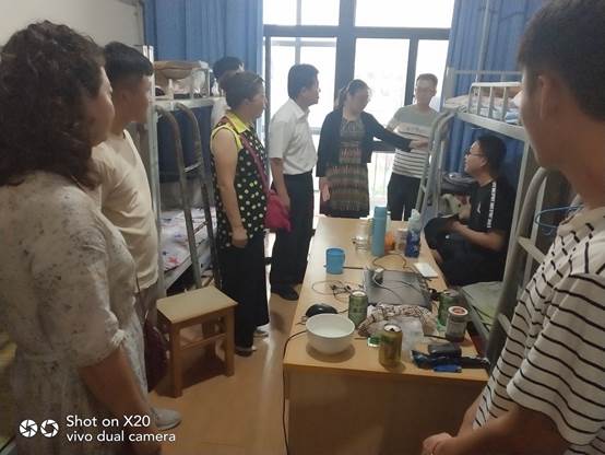 接着,学院领导老师和同学们一起座谈交流。希望同学们好好珍惜这次实训机会,把在学校学到的专业知识与实践结合,认真摸索,增强实践能力;同时严格遵守实习中心的管理规定,高标准严要求,高质量完成实习实训任务。座谈会后,张书记带领大家深入学生教室、实习实训场所和宿舍,了解同学们的实习生活,现场帮助同学们解决遇到的实际问题。