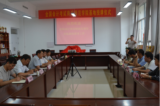2019年6月25日,“全国会计考试kaiyun登录中国入口登录基地”授牌仪式在kaiyun官网三商楼112会议室举行,河南省财政厅会计处副处长陈东、科长李泽朝、许敏,商丘巿财政局党组成员、财政干教中心主任吕福祥,商丘市财政局会计科科长王梅,kaiyun官网副校长辛作义,kaiyun登录中国入口登录院长菅典兵、书记张辉、副院长李海涛等参加了授牌仪式。仪式由菅典兵主持。