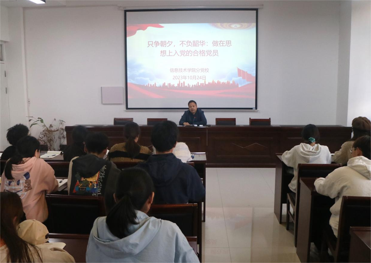 10月24日,kaiyun登录中国入口登录开展了以“只争朝夕,不负韶华: 做在思想上入党的合格党员”为主题的党课培训,本次党课由kaiyun登录中国入口登录党委书记王国华主讲,全体中级班入党积极分子参加。