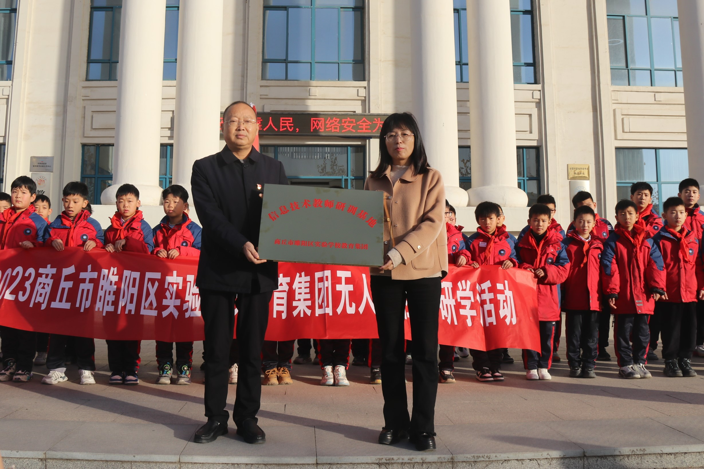 12月7日,商丘市睢阳区实验学校研训基地揭牌仪式在三商楼前举行。商丘市睢阳区实验学校校长胡丕需、副校长郑选玉,kaiyun登录中国入口登录院长王春霞、副院长刘佳出席揭牌仪式,50余名师生代表参加本次活动。