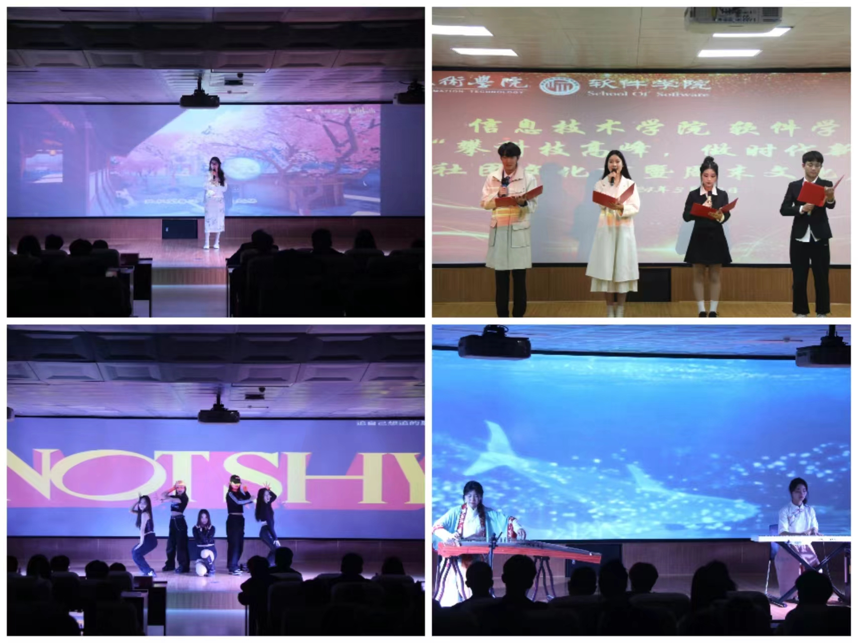 期间,同学深情献唱了古风歌曲《棠》、活力动感的《Not Shy》以及学院小橘灯宣讲团带来的主题诗朗诵《攀科技高峰,于吾辈担当》,赢得了现场师生的阵阵掌声。