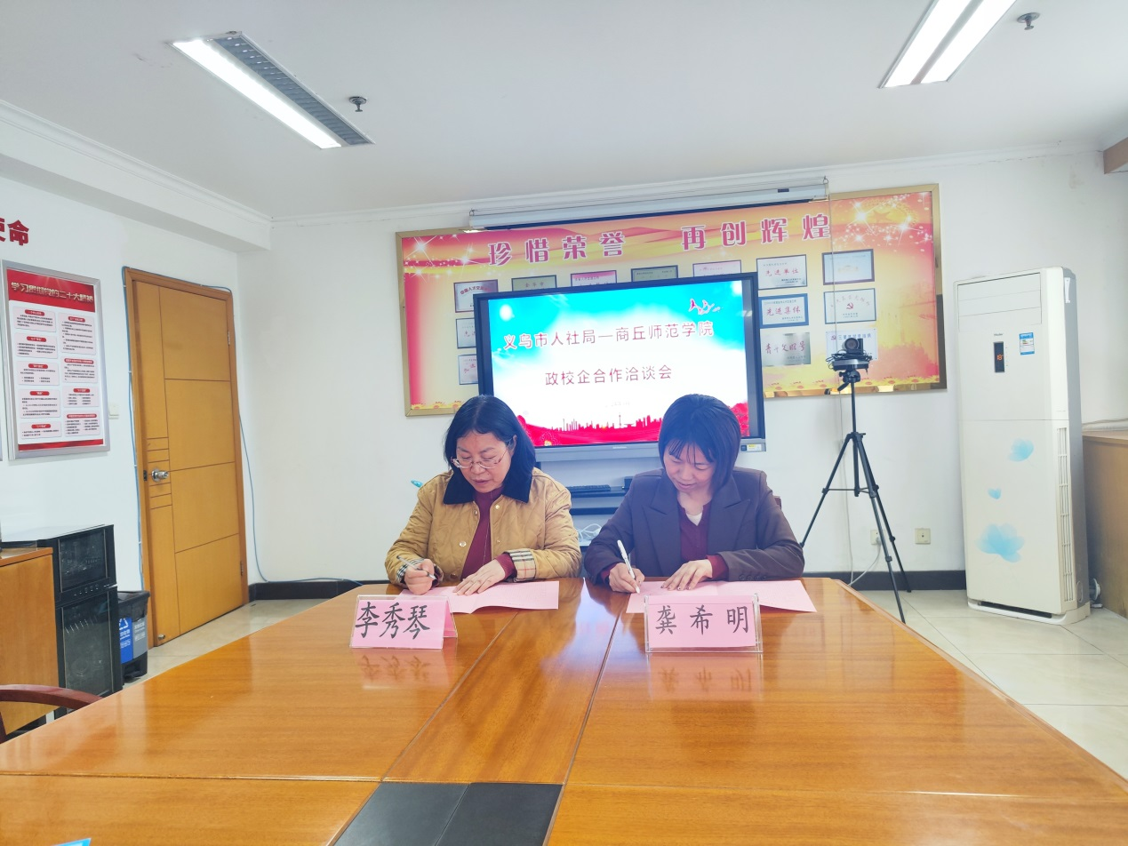此次访企拓岗,学校与杭州市萧山区人社局就业服务中心和义乌市人社局就业服务中心共签订了两份政校实习基地共建协议,信息技术学院与实地考察的九家企业签订了校外实习就业基地协议,在大学生职业发展规划指导、实习就业信息服务、企业校园招聘等领域广泛寻求合作,为建立高质量的实习就业基地打下了坚实的基础。