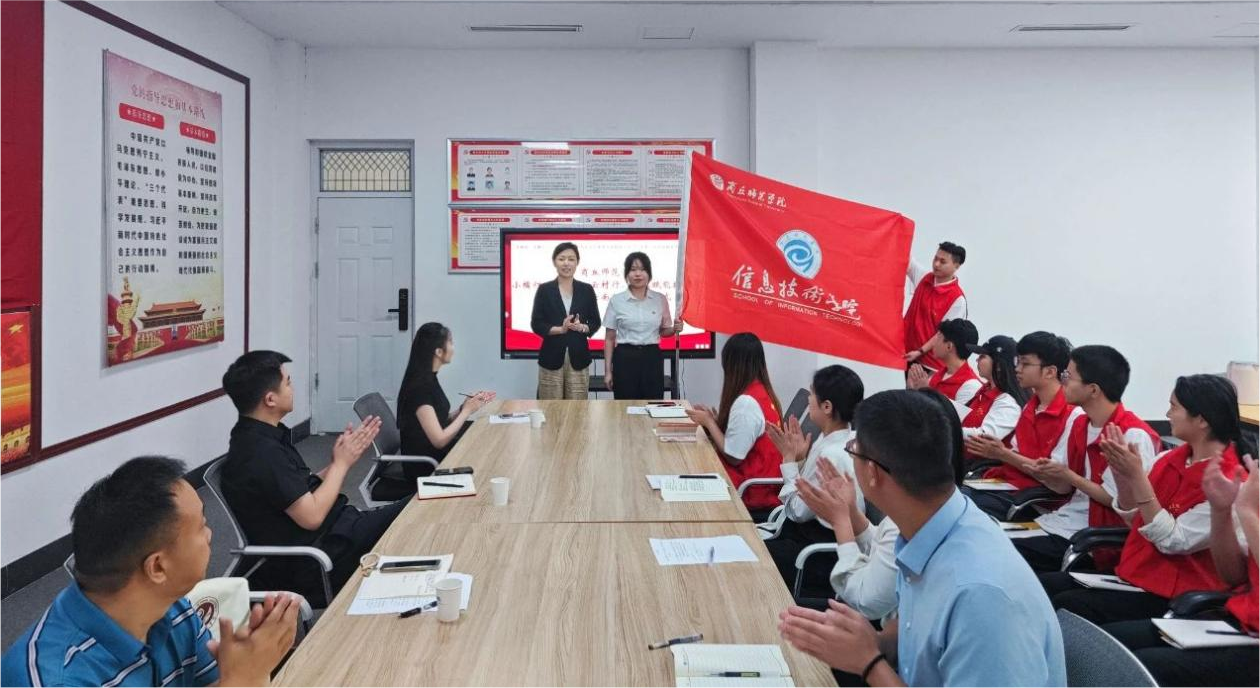 刘培培为小橘灯“石榴同心云村行,青春赋能振兴梦”实践团授旗。