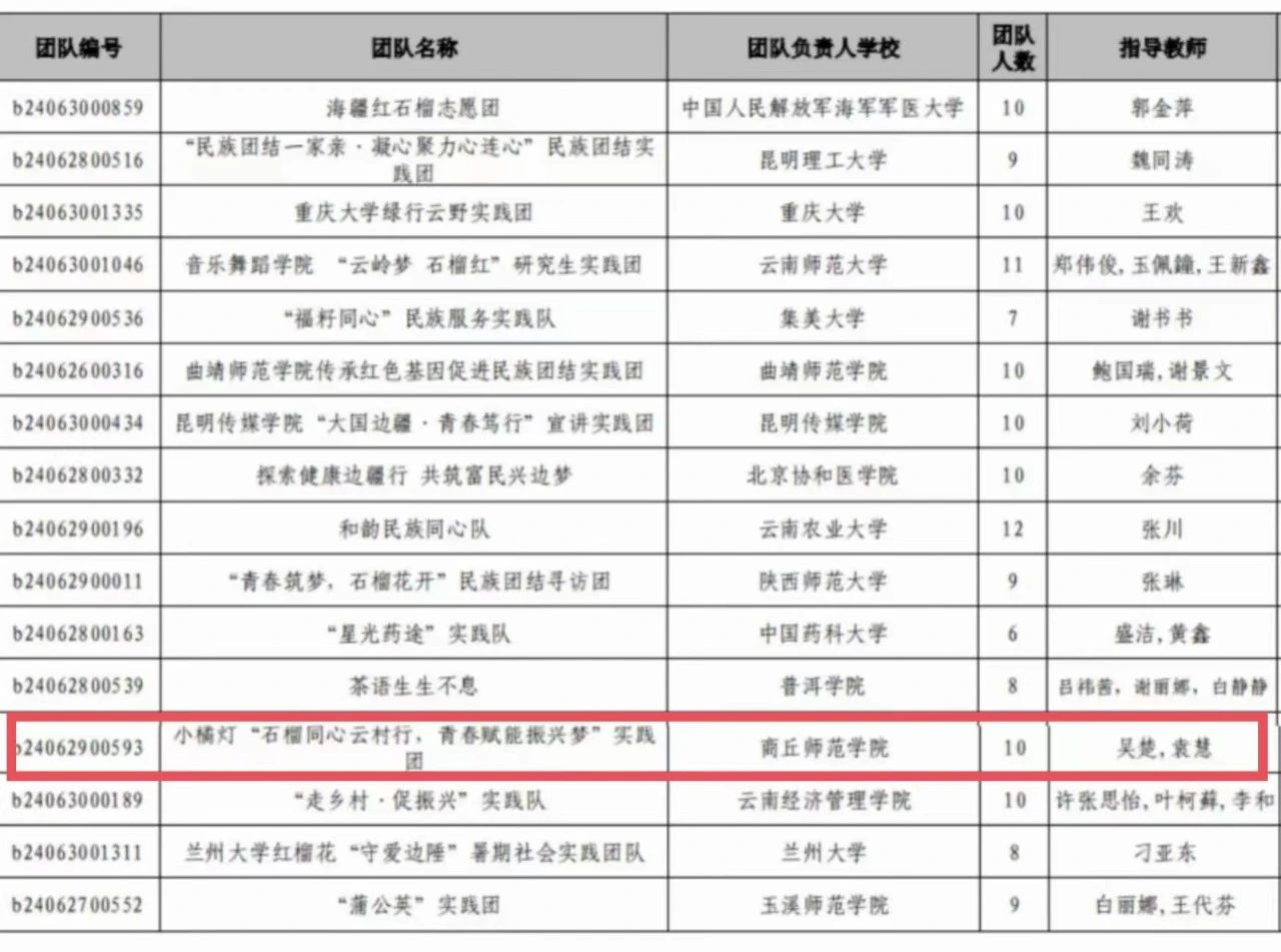 “石榴红·边疆兴”— 2024年全国大学生暑期文化科技卫生“三下乡”社会实践专项活动,全国共遴选出50支队伍,kaiyun登录中国入口登录小橘灯“石榴同心云村行,青春赋能振兴梦”实践团成功入围。
