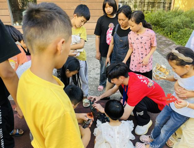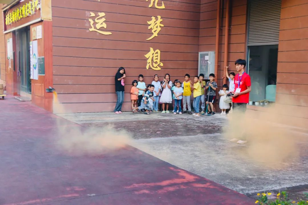 最后,实践团成员组织孩子们在室外观看穿越机特技表演,随着倒数声—3、2、1、发射!穿越机像离弦的箭一样飞向天空,瞬间点燃孩子们的激情,现场尖叫声连连,为孩子们带来一场视觉盛宴。