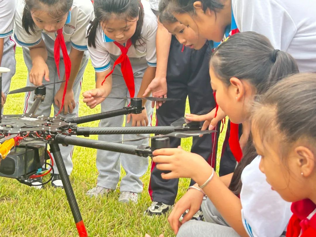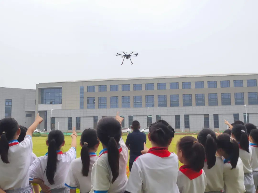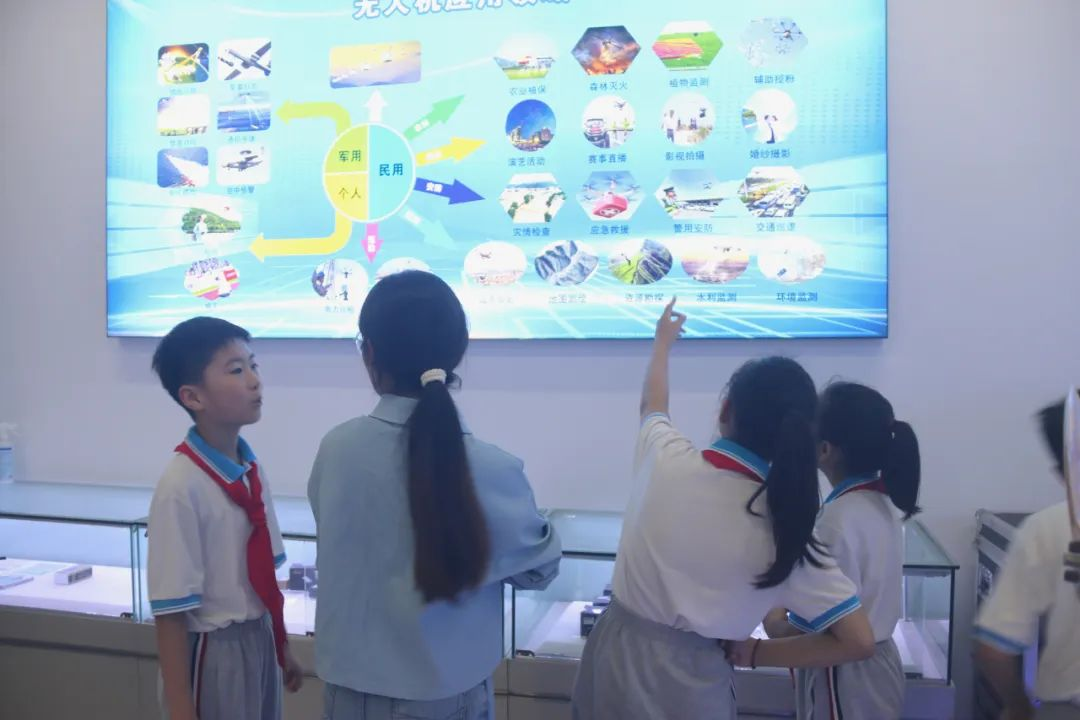在科普老师的带领下,学生们参观了科技感拉满的无人机展厅,各种类型的无人机和挂载设备让孩子们大开眼界。