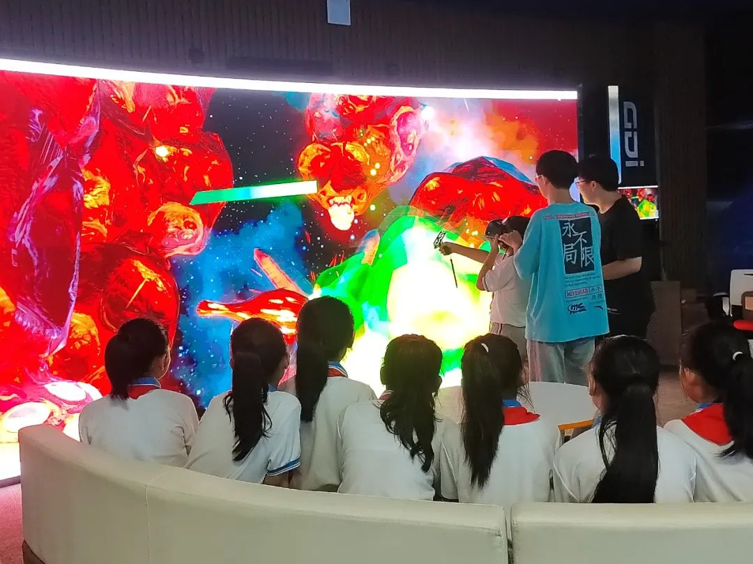 小朋友先后参观了人工智能教学实训中心、无人机应用创新中心和VR实验室,对智能小车、无人机等先进设备充满了好奇,开阔了眼界。