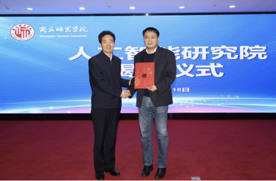 杨天若、张团结、张志坚、陈向炜共同为人工智能研究院揭牌。陈向炜为杨天若颁发研究院学术委员会主任聘书。