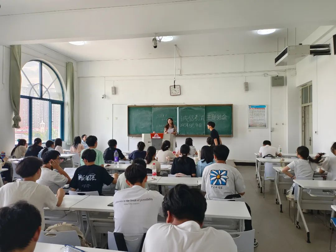 班会上,辅导员老师们以典型案例为切入点,结合《学生考试违纪处理办法》,详细解读考场规则与违纪后果,引导学生树立“诚信立身、诚信应考”理念。同时,通过签署《诚信考试承诺书》,增强学生的自律意识和责任担当。