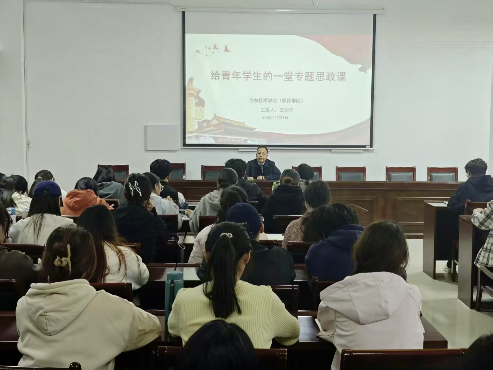 王国华围绕主题,从“初心如炬,涵养为民情怀”、“使命如山,扛起时代责任”、“奋斗如歌,彰显青年担当”三个维度展开深入讲解。他强调,入党积极分子作为党的后备力量,正处于扣好政治生涯“第一粒扣子”的关键阶段,希望全体学员能够将个人成长融入国家发展和民族复兴的伟大事业中,不断在思想、能力、作风上锤炼自身,以实际行动诠释情怀、责任与担当。