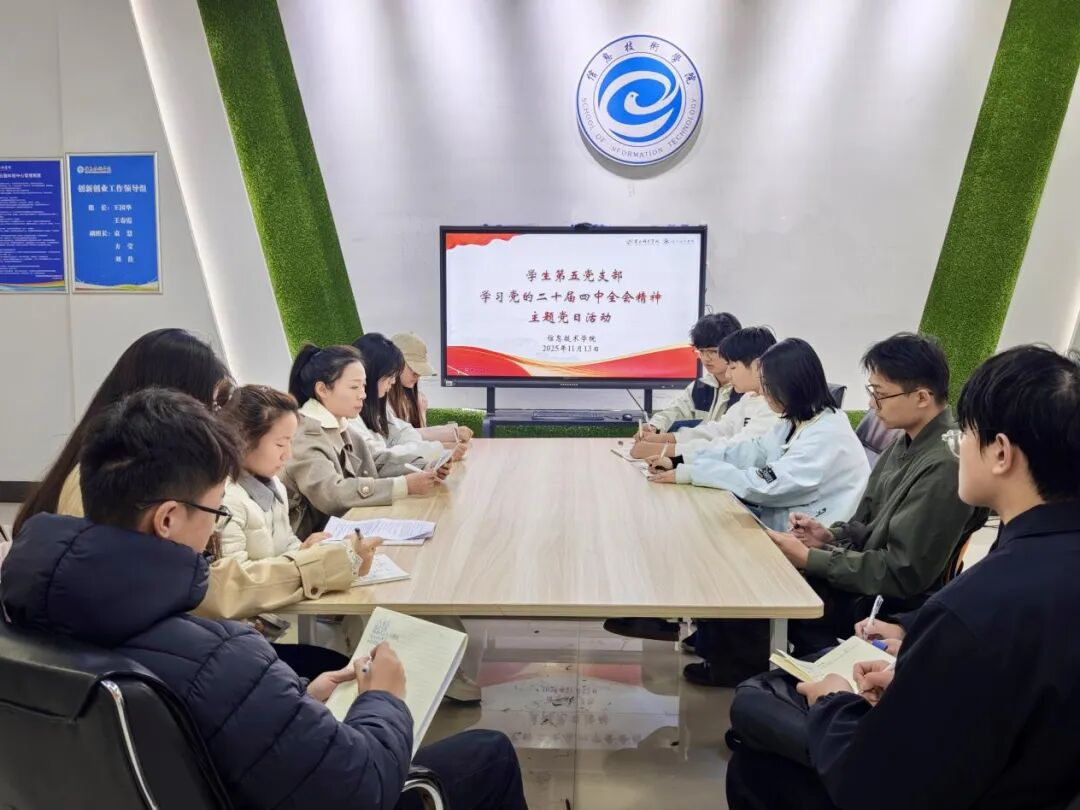 11月13日,kaiyun登录中国入口登录学生第五党支部在三商楼102会议室开展学习贯彻党的二十届四中全会精神主题党日活动,活动由党支部书记吴楚主持,支部全体学生党员参加。