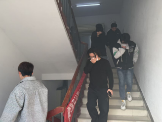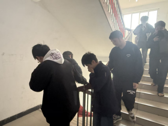 下午,演练正式启动。随着警报声响起,宿舍楼内迅速弥漫起模拟烟雾,全体住宿学生听到警报声后立即作出反应,用湿毛巾捂住口鼻,在现场楼层引导员指引下,弯腰低姿,沿着预定疏散路线,快速、有序地向34号楼南侧停车场撤离。整个过程中,工作人员分工明确、配合紧密,师生们行动迅速、秩序井然,充分体现了学院师生良好的应急素养和团队协作精神。